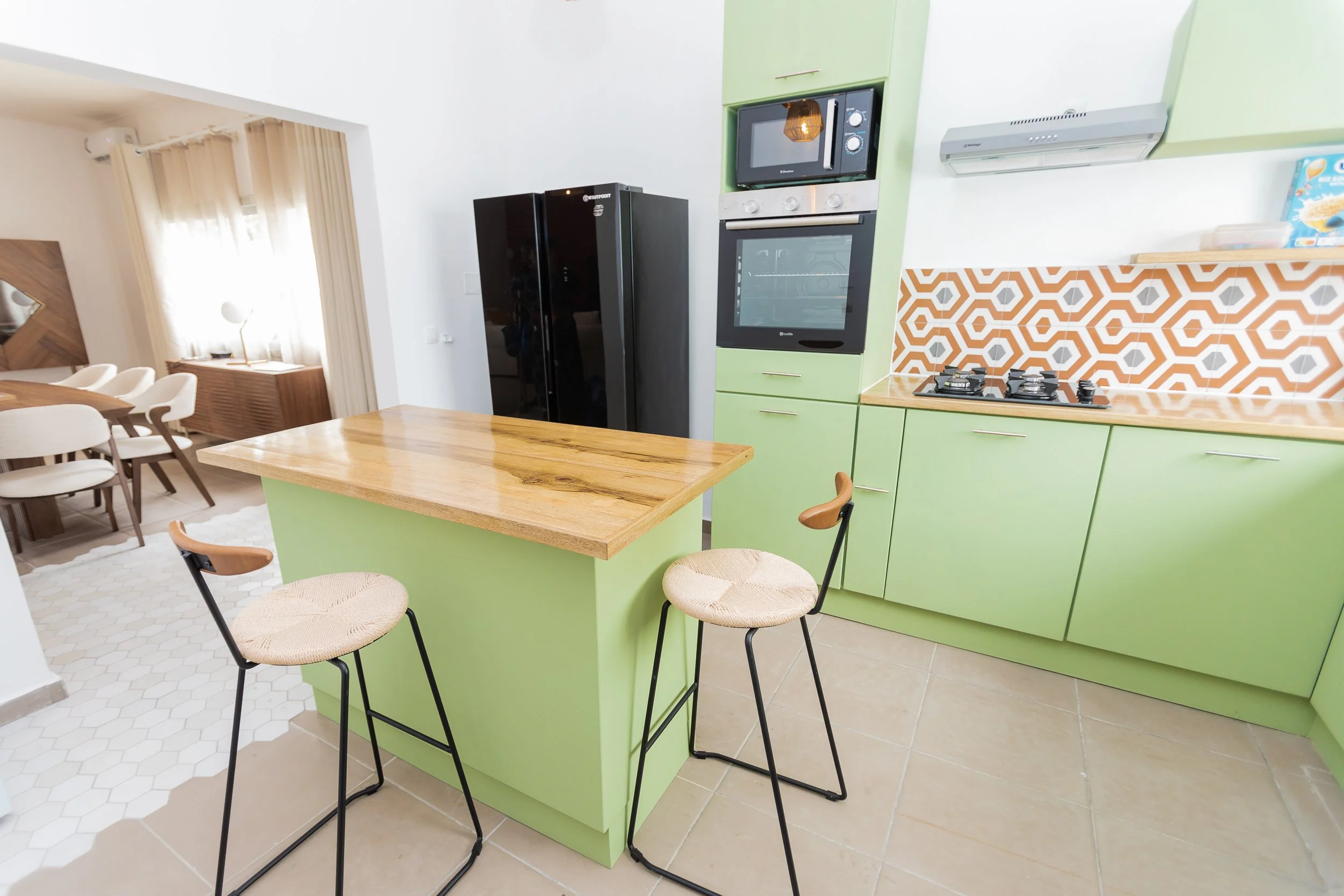 Du blanc et des couleurs vives, rappelant la joie et la bonne humeur des vacances passées en famille rythmeront les espaces. Le bois clair est omniprésent et apporte un côté naturel. La végétation fait partie intégrante du décor et l’ambiance générale se veut simple mais de qualité.